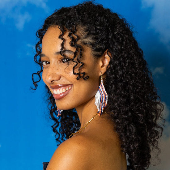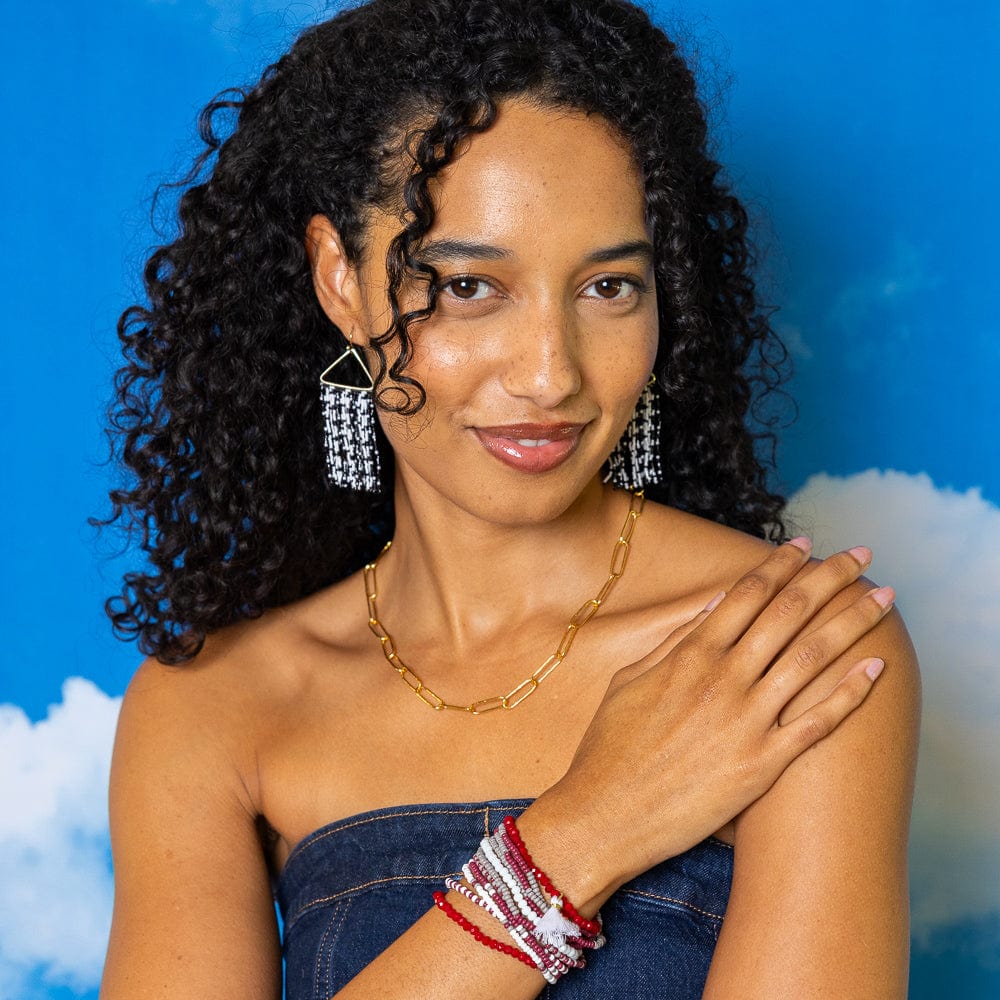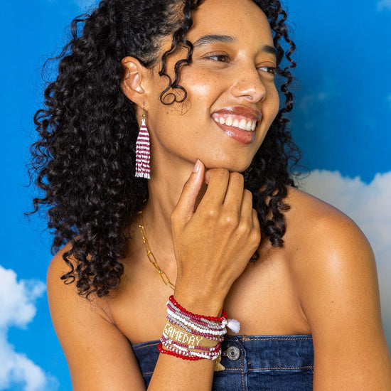 2. Game Day Tassel Seed Bead Earrings Maroon + Orange Fringe