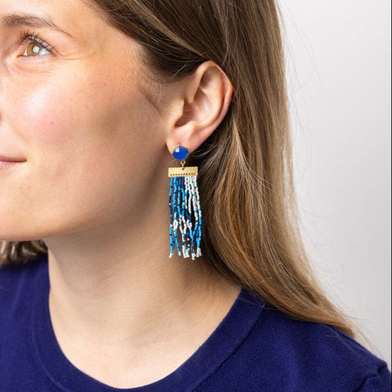3. Brittany Thin Waterfall Stripes Beaded Fringe Earrings Rio