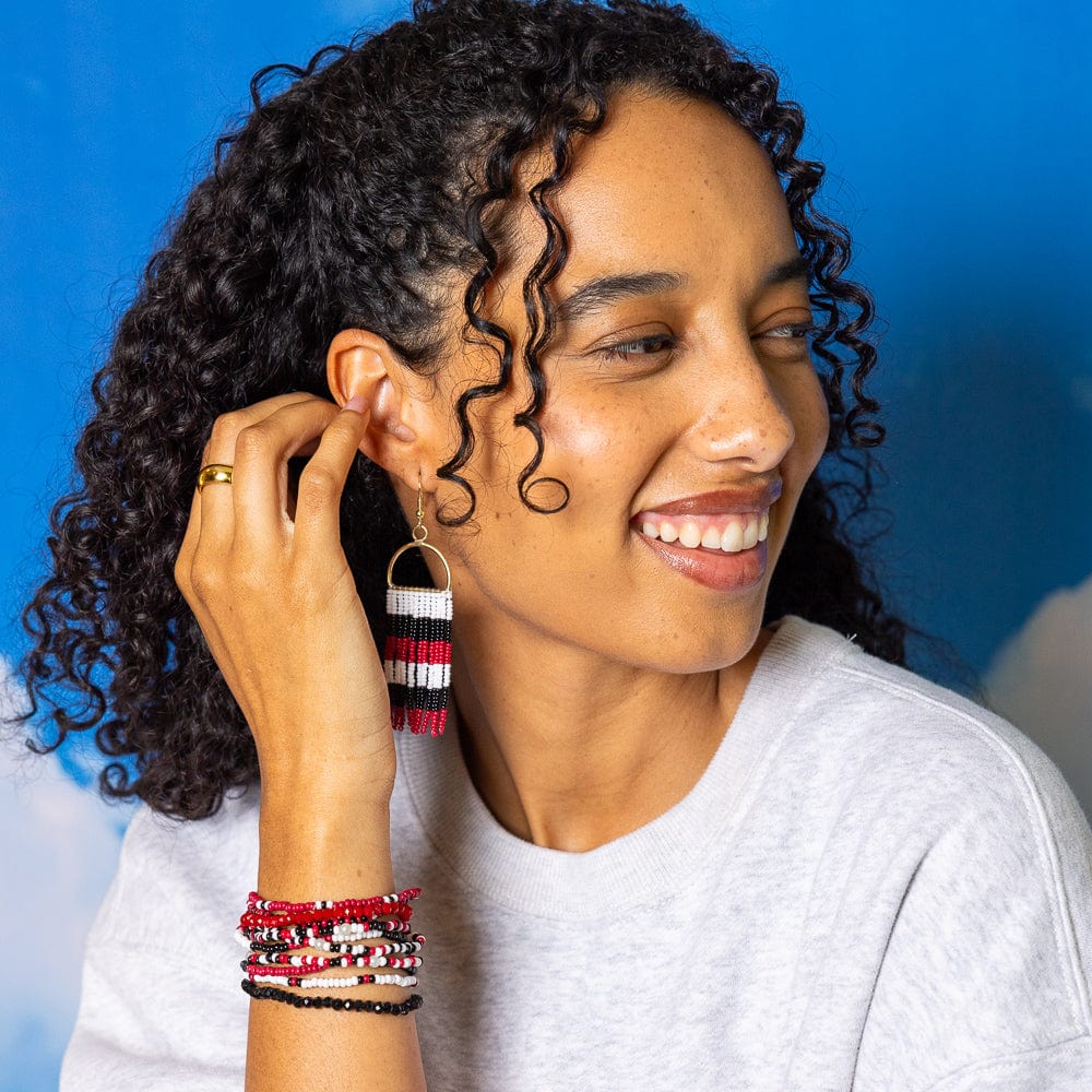 Billie Game Day Mixed Horizontal Stripes Beaded Fringe Earrings Bright Red and Black$ 40.00 $ 24.00Sale