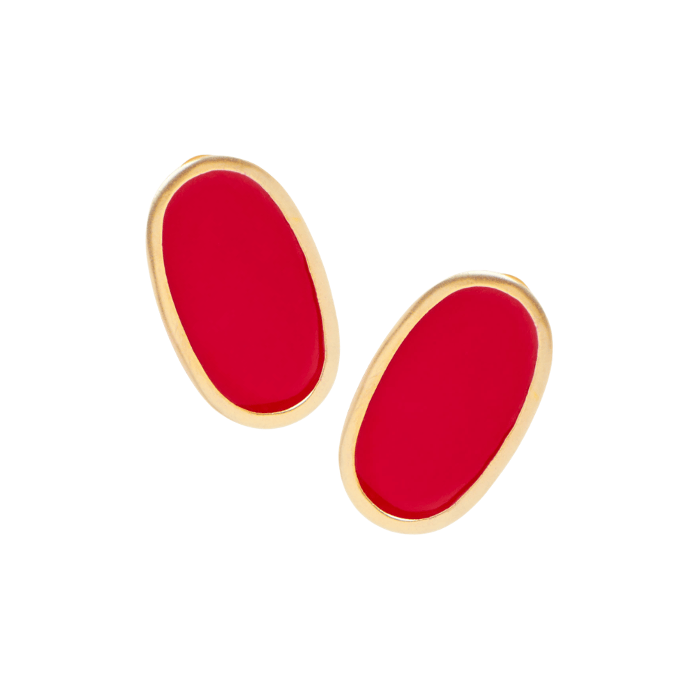Alexis Oval Enamel Post Earrings Red Framed In Brass