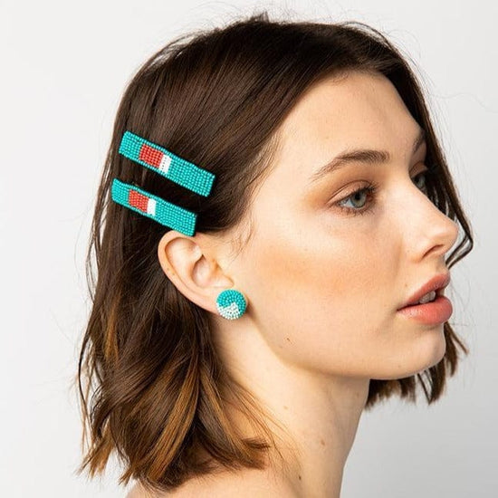 2. Game Day Striped Beaded Headband Blue + Crimson Headband