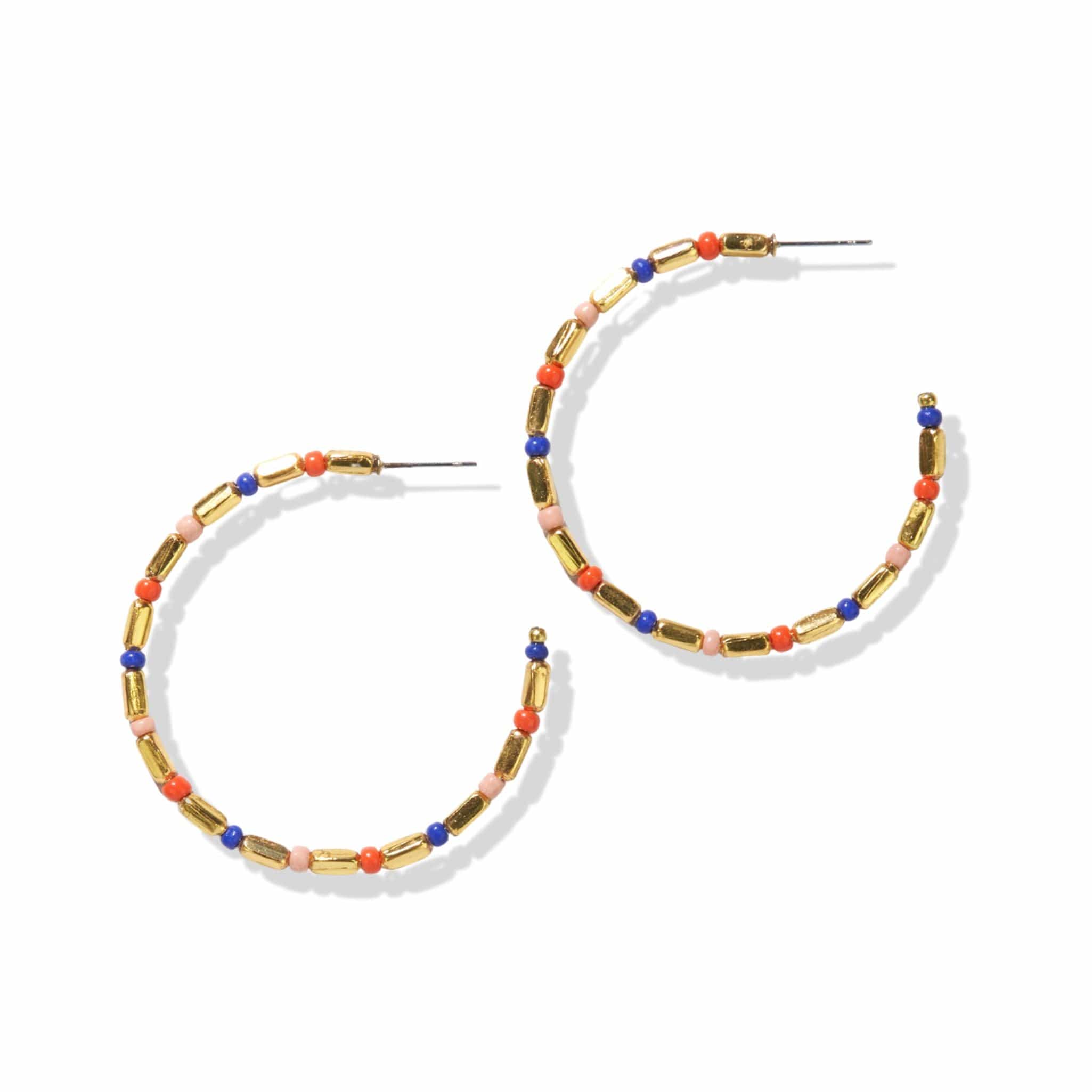 Mixed Beaded Hoop Earrings Red aned Hot Pink
